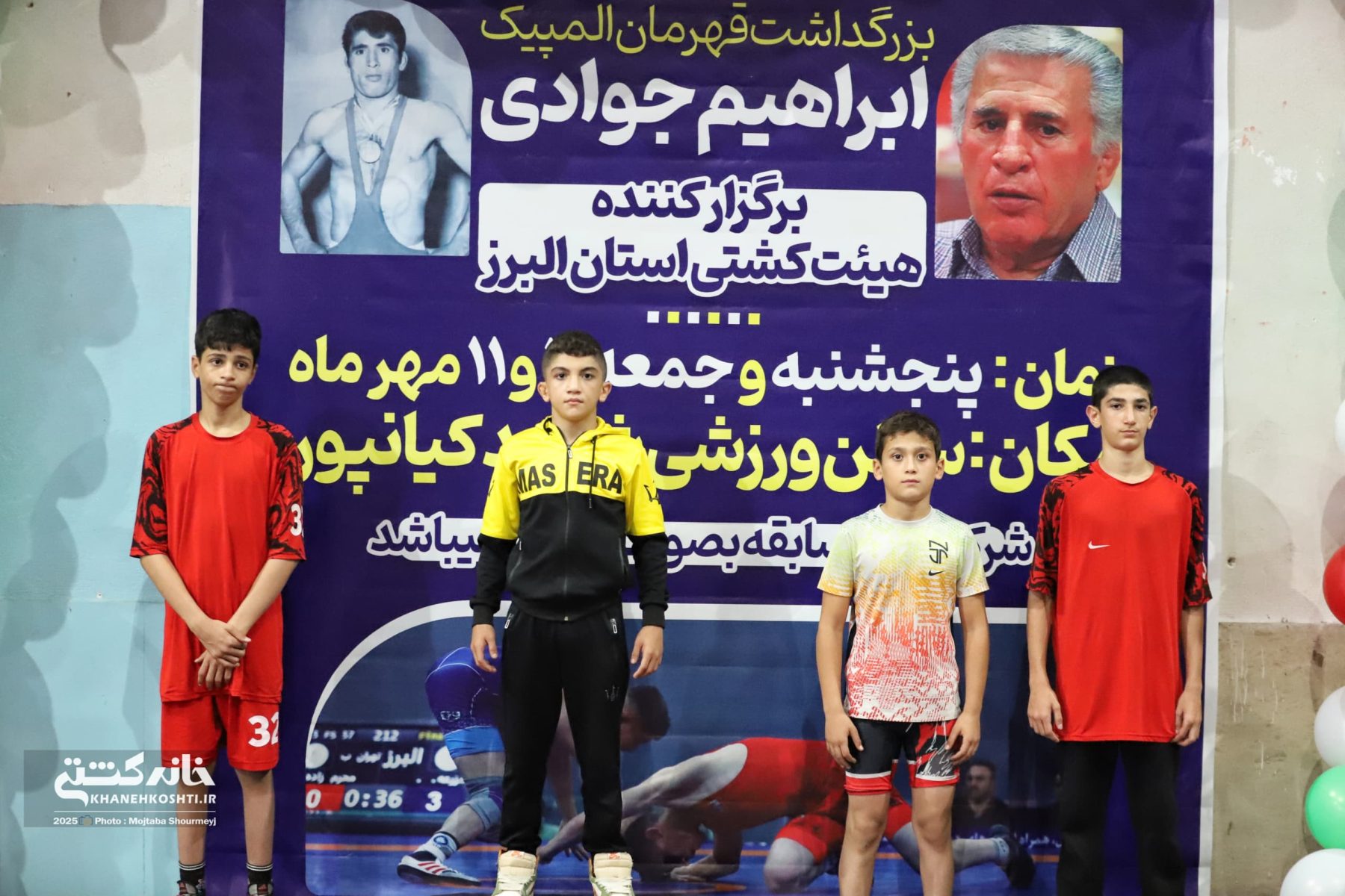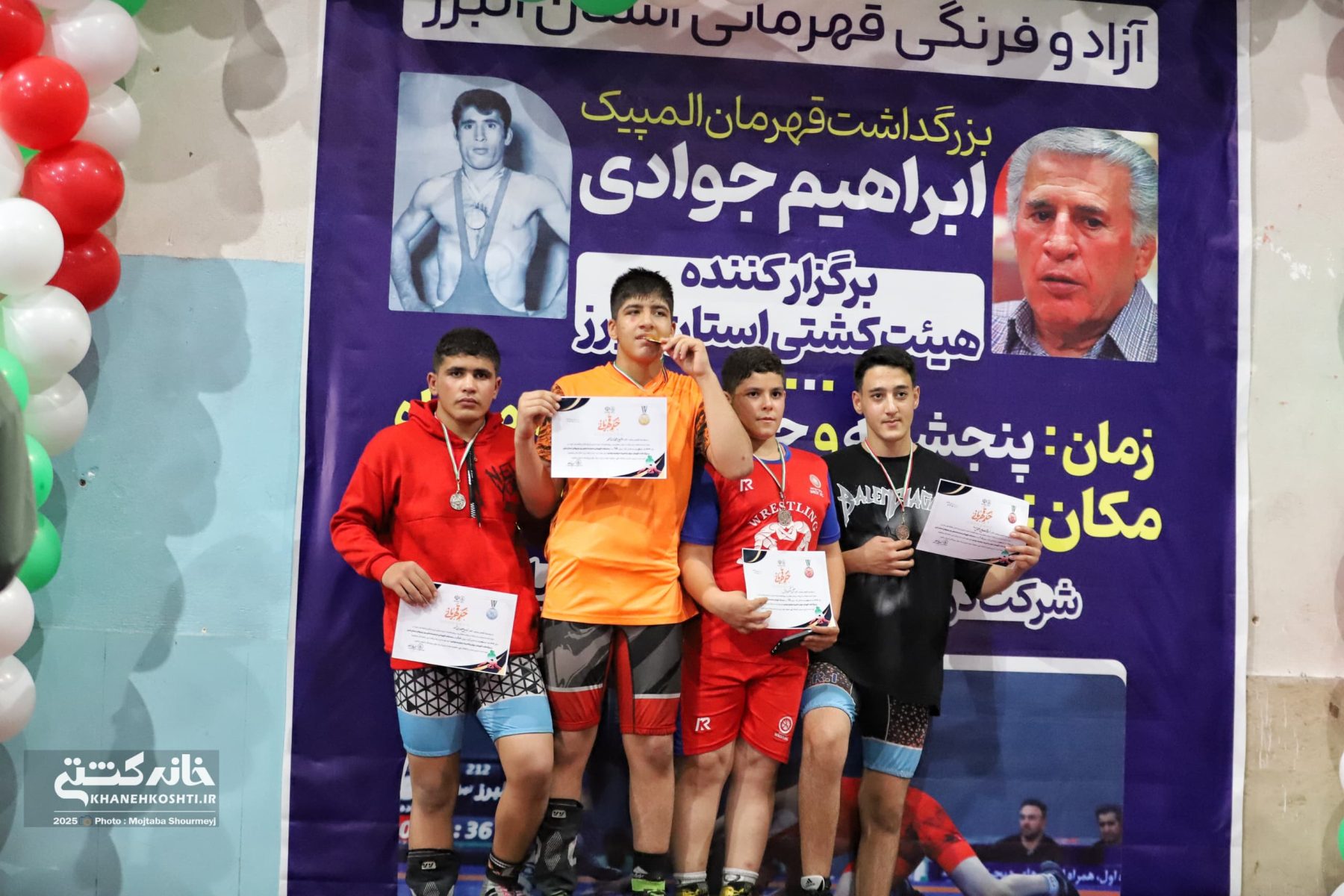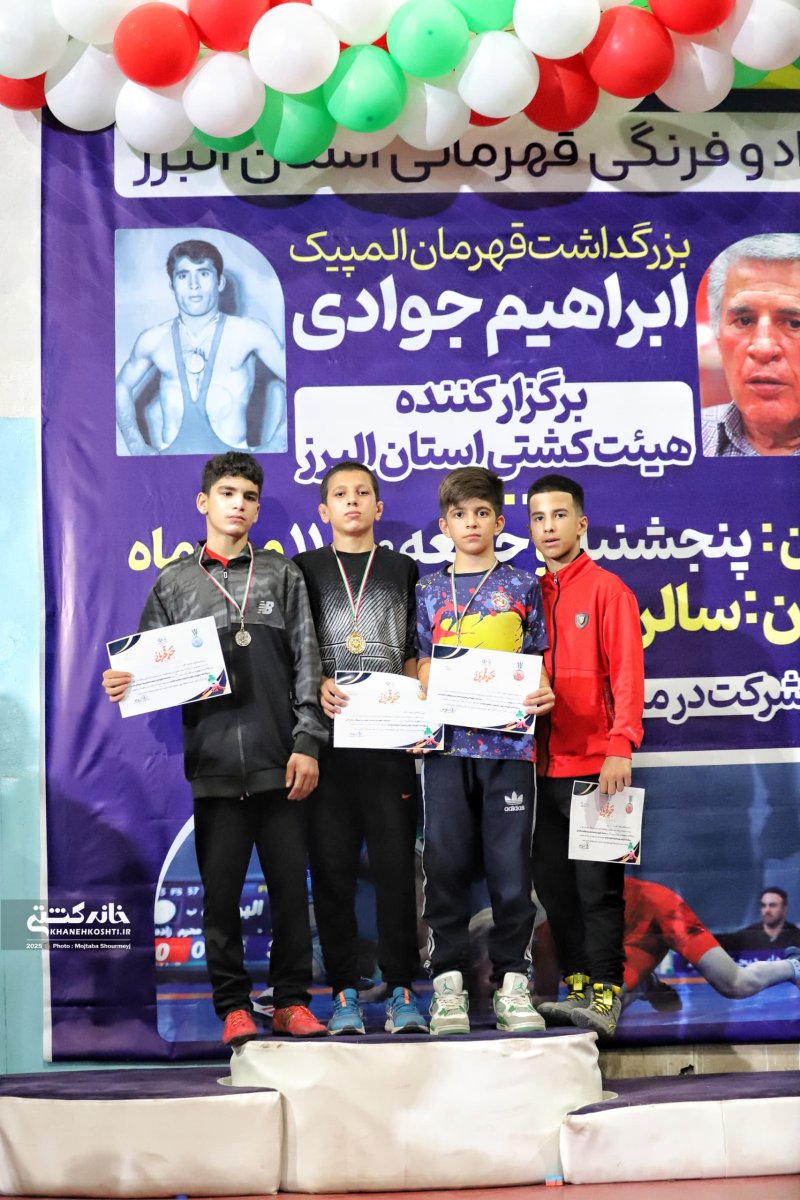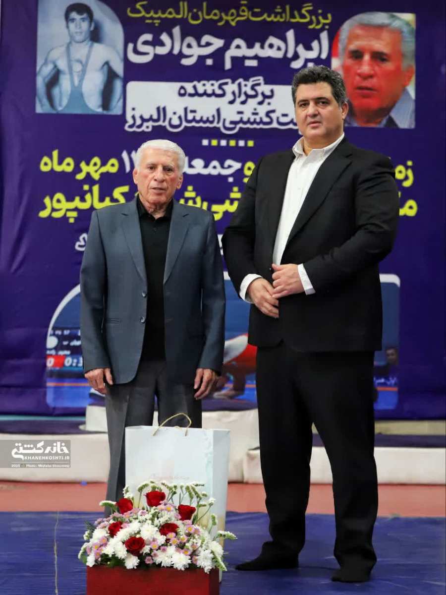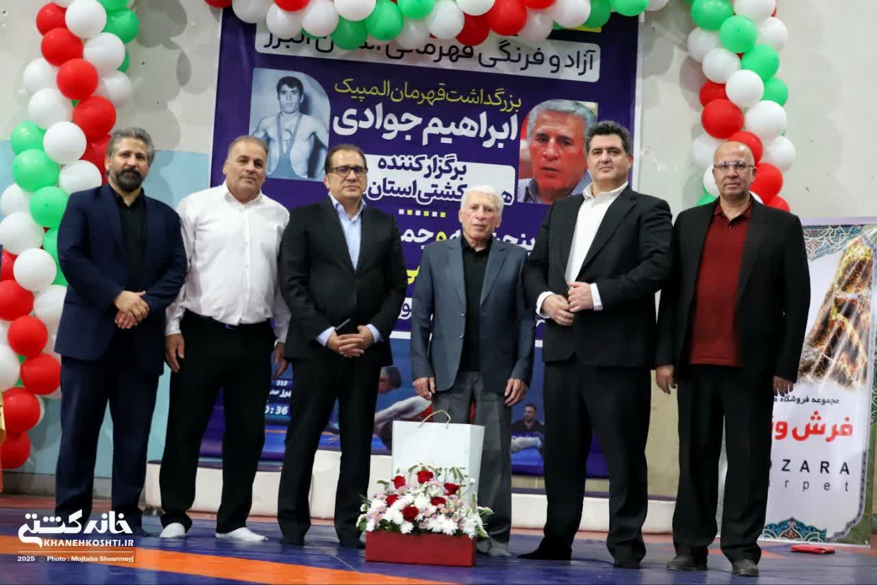 در جریان این مسابقات، با حضور جمعی از پیشکسوتان، مسئولان ورزشی و مدیران استانی، از استاد پهلوان ابراهیم جوادی، قهرمان اسبق المپیک، توسط هیأت کشتی استان البرز تجلیل به عمل آمد.