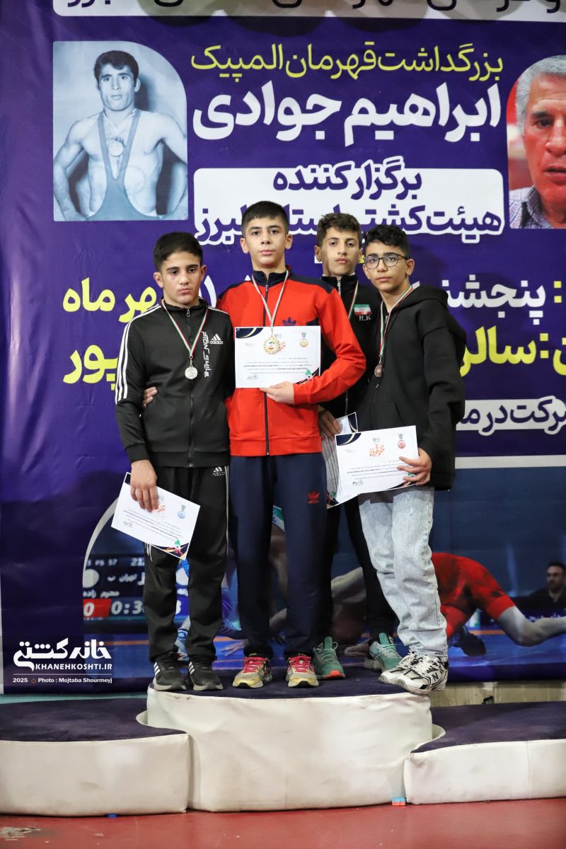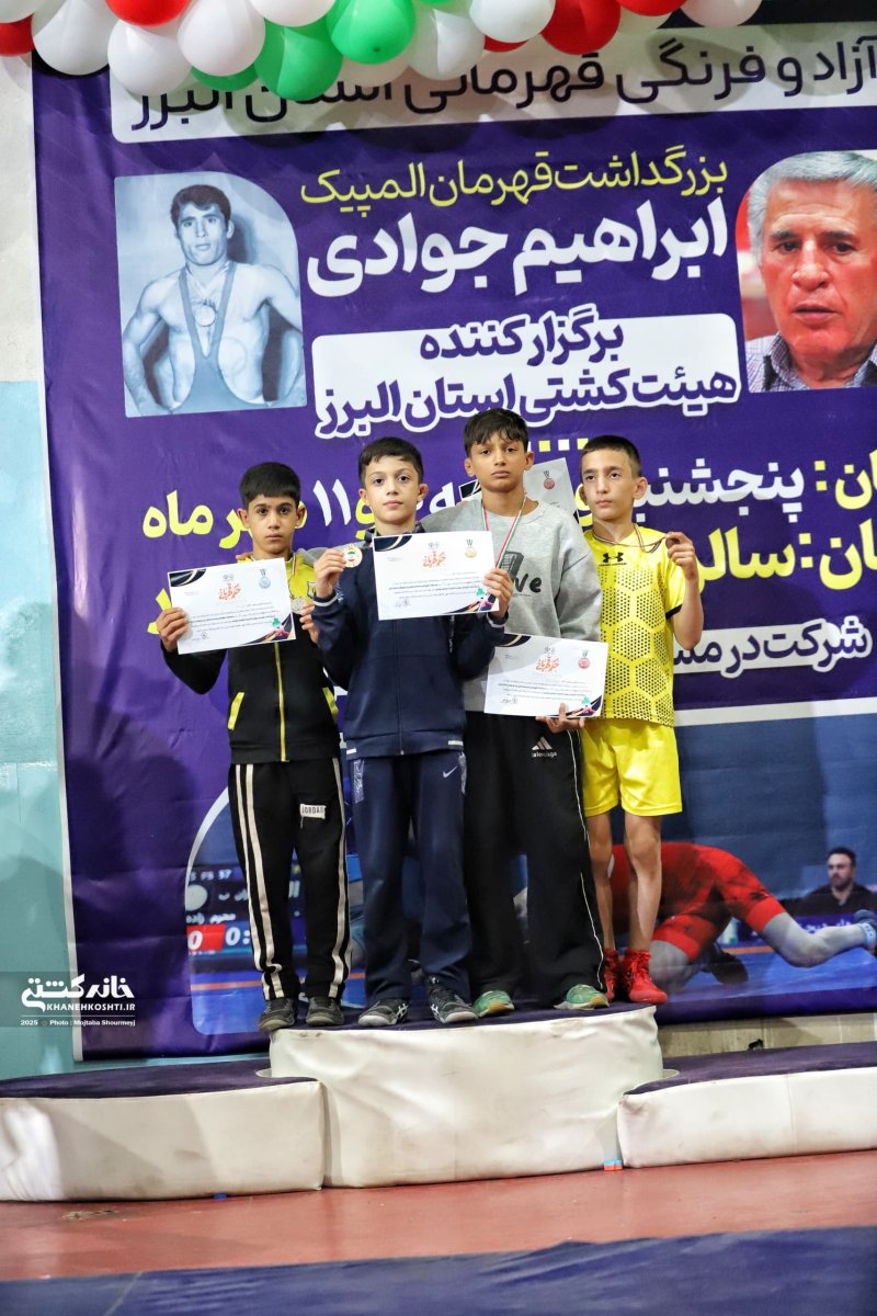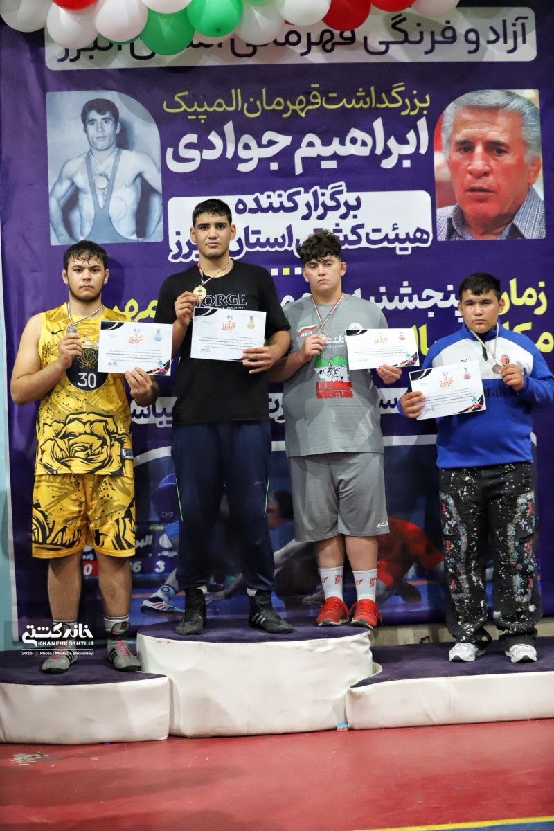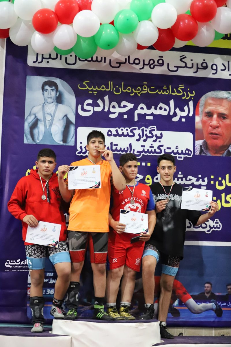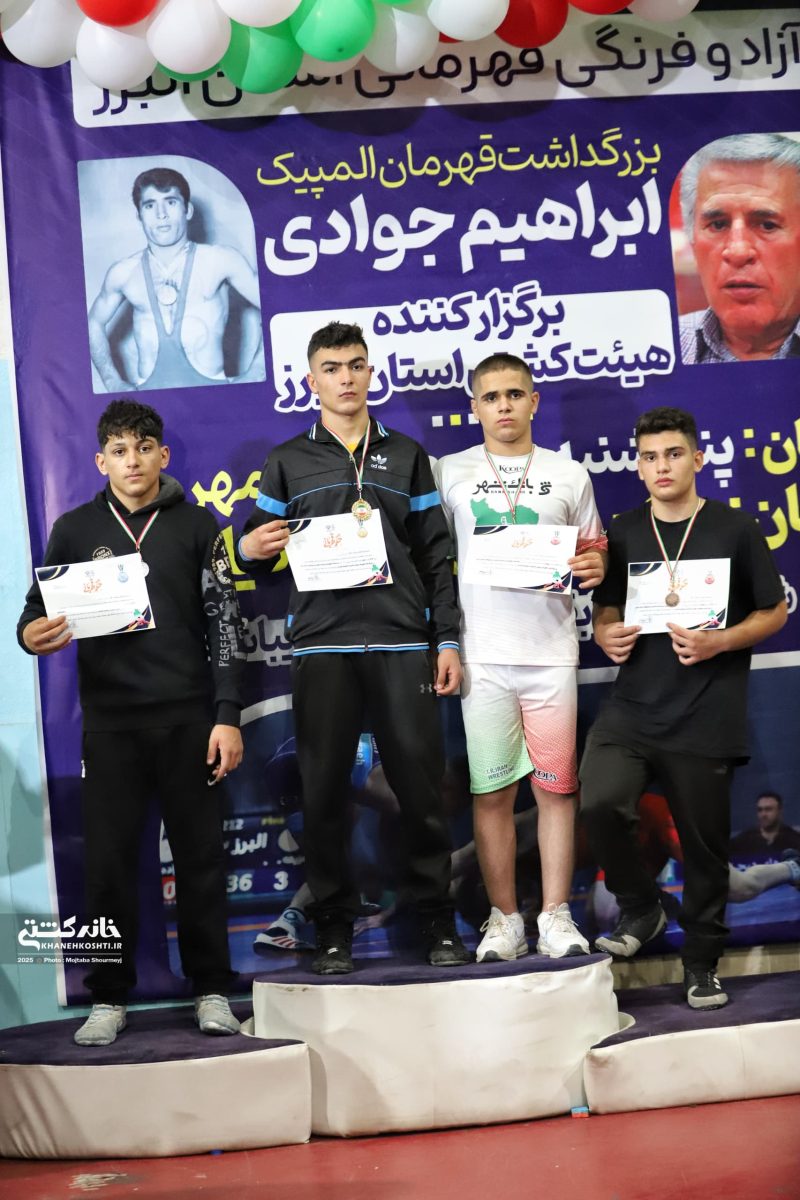در جریان این مسابقات، با حضور جمعی از پیشکسوتان، مسئولان ورزشی و مدیران استانی، از استاد پهلوان ابراهیم جوادی، قهرمان اسبق المپیک، توسط هیأت کشتی استان البرز تجلیل به عمل آمد.